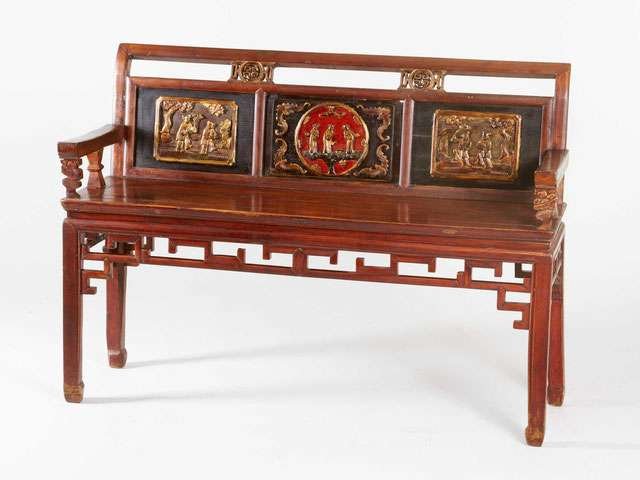 Stühle CHINA Stuhl-001 Reisetruhe eines Lama-Priesters China, späte Qing-Dynastie,Stabiles, braunes Hartholzgestell.H: 91 cm, SH: 54,5 cm, B: 126,5 cm, T: 38 cmPreis: 980 € Contact Stuhl-002 Eleganter Schaukelstuhl Republik China, um 1920–1930.Stabiles Gestell aus dunklem, trop. Hartholz, verzierte Rückenlehne, mittlere Strebe mit Drachenkartusche in feiner Reliefschnitzerei, geschwungene Sitzfläche, ausziehbare Fußrast.H: ca. 91 cm, SH: ca. 44 cm, B: 52 cm, T: ca. 107 cmPreis: 650 € Contact Stuhl-003 Höfischer Hufeisensessel im Stil der Ming-Dynastie Späte Qing-Dynastie,Hartholz mit schwarzer Lackfassung und polychromer BemalungGH: 101 cm, SH: ca. 52,5 cm, B: 63,3 cm, T: 45,5 cmPreis: 550 € Contact Stuhl-004 Provinzielle Bank China, 19.Jh..Hellbraunes Hartholz, glatte Platte, die in stabile Vierkantbeine übergeht, die seitlich, untereinander doppelt verbunden sind.H: 50 cm, B: 100 cm, T: 24,8 cmPreis: 240 € Contact